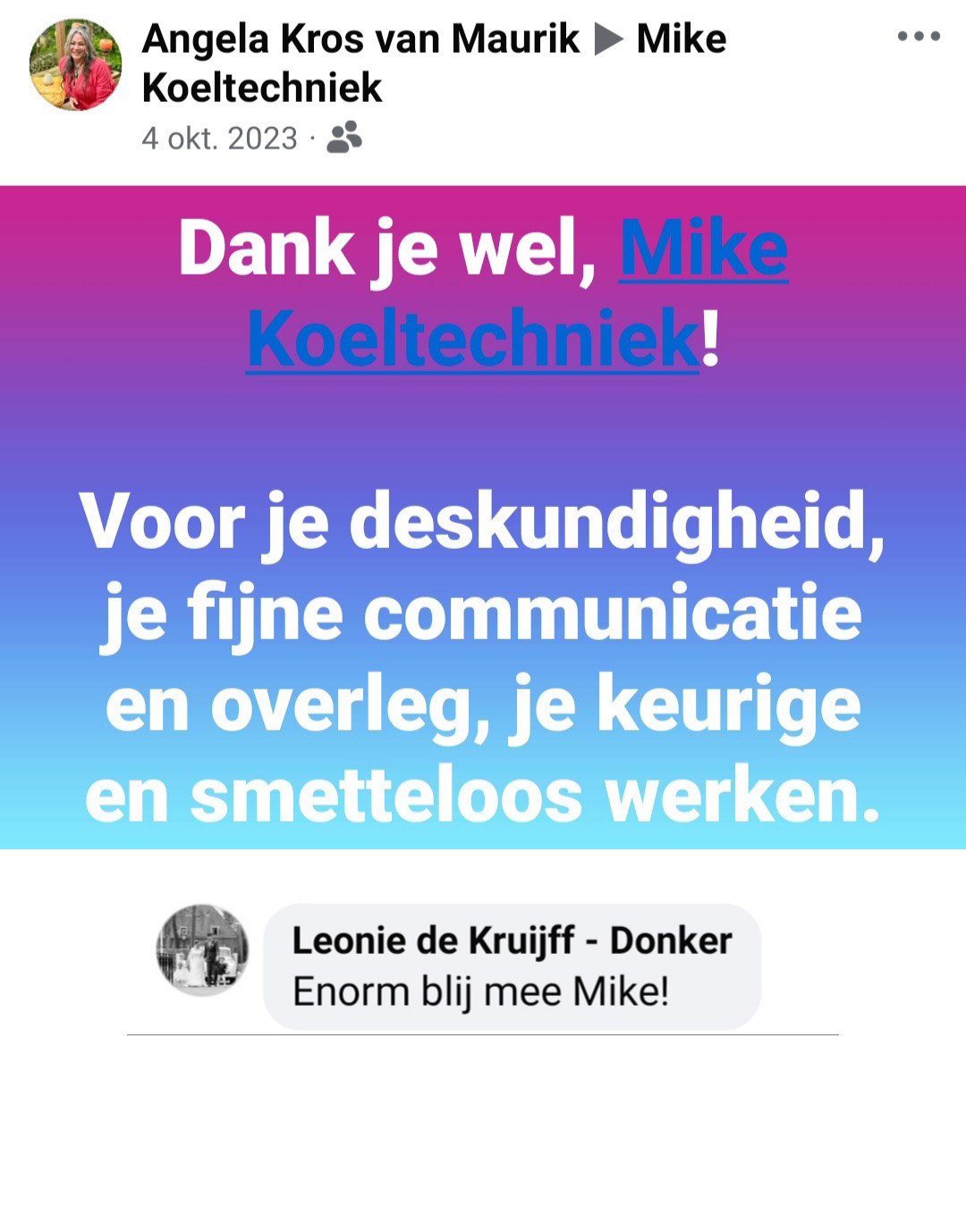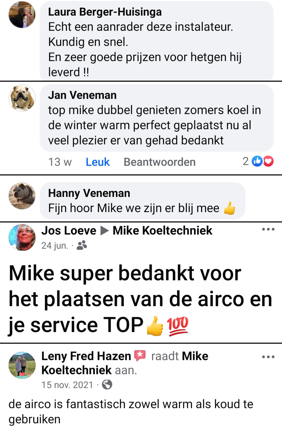 Bekijk hier nog meer reviews en ervaringen van andere klanten van Mike Koeltechniek: